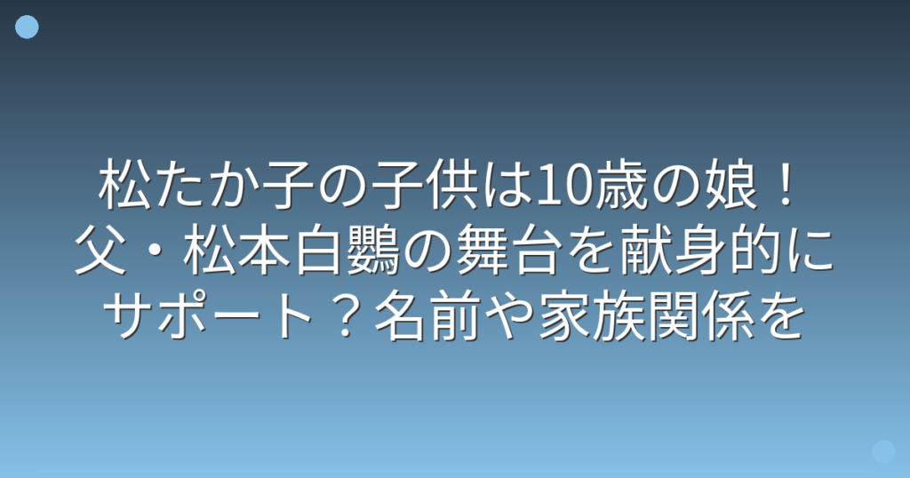 松たか子の子供は10歳の娘!父・松本白鸚の舞台を献身的にサポート?名前や家族関係を徹底調査!