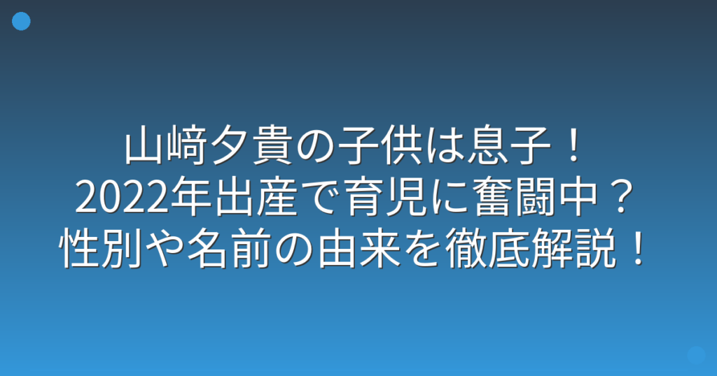 山﨑夕貴の子供は息子!2022年出産で育児に奮闘中?性別や名前の由来を徹底解説!
