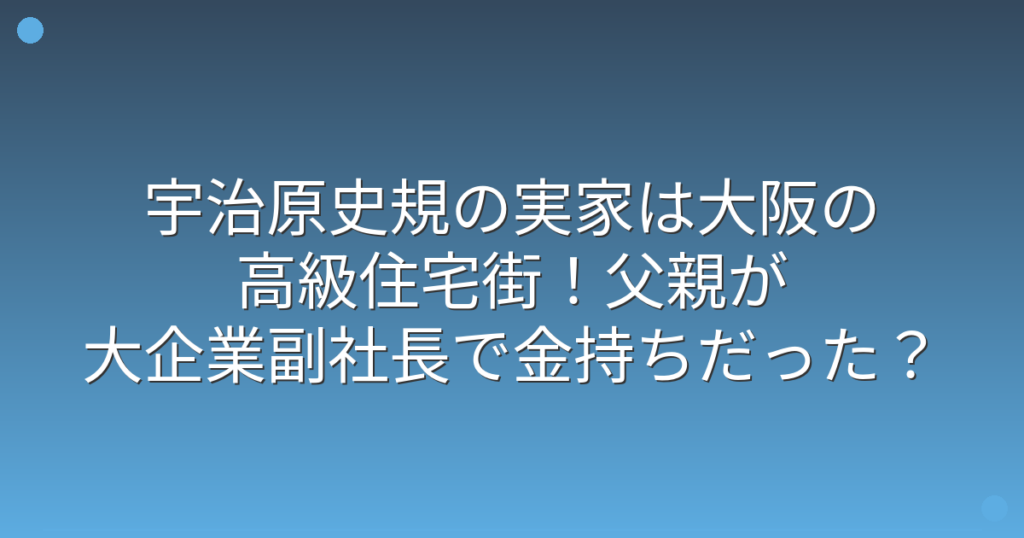 宇治原史規の実家は大阪の高級住宅街!父親が大企業副社長で金持ちだった?