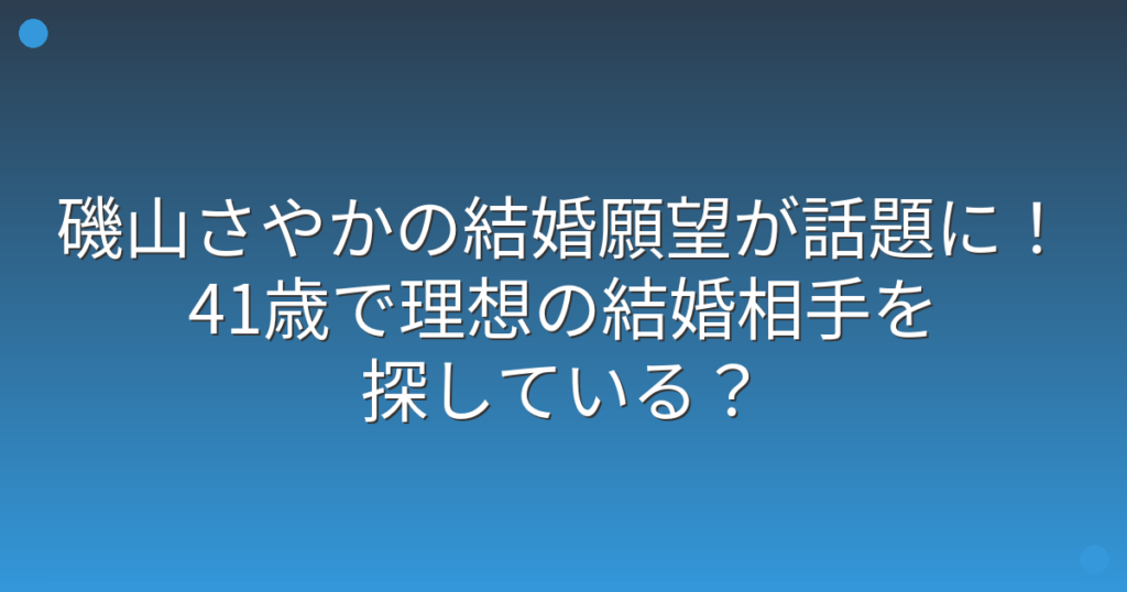 磯山さやかの結婚願望が話題に!41歳で理想の結婚相手を探している?
