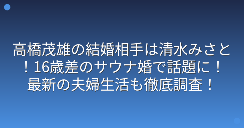 高橋茂雄の結婚相手は清水みさと!16歳差のサウナ婚で話題に!最新の夫婦生活も徹底調査!