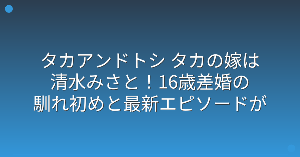 タカアンドトシ タカの嫁は清水みさと!16歳差婚の馴れ初めと最新エピソードが話題に!