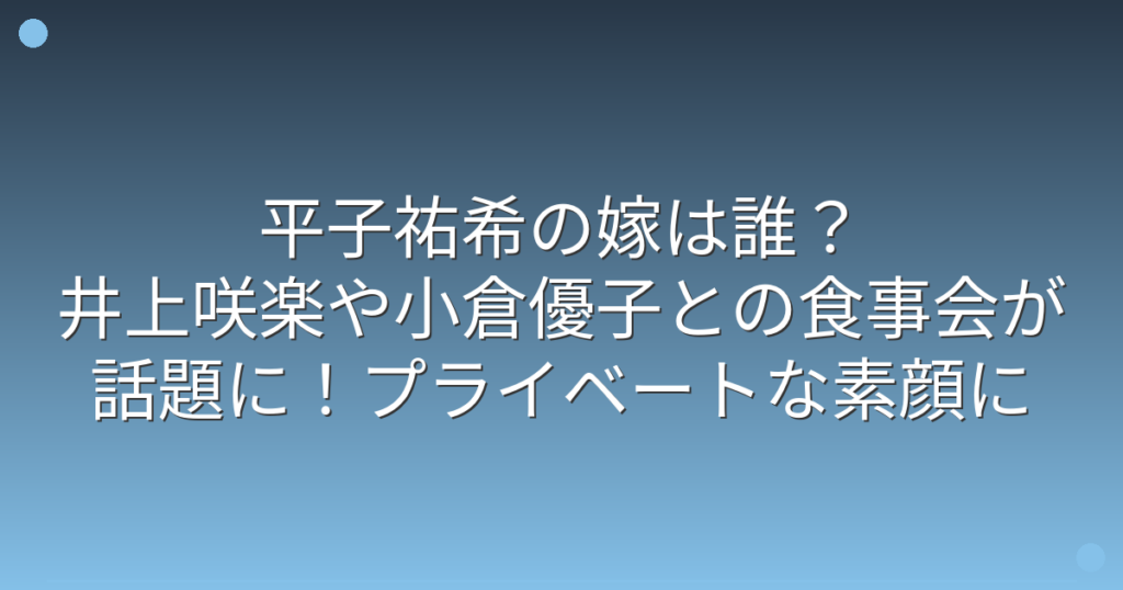 お笑いコンビ「アルコ&ピース」の平子祐希さんが、最近SNSでの投稿や交友関係が話題になっていますね。 特に、井上咲楽さんや小倉優子さんとの食事会の様子が注目を集めています。 そこで今回は、平子祐希さんの結婚や嫁について、また最近の活動や交友関... -