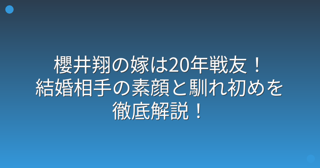 櫻井翔の嫁は20年戦友!結婚相手の素顔と馴れ初めを徹底解説!
