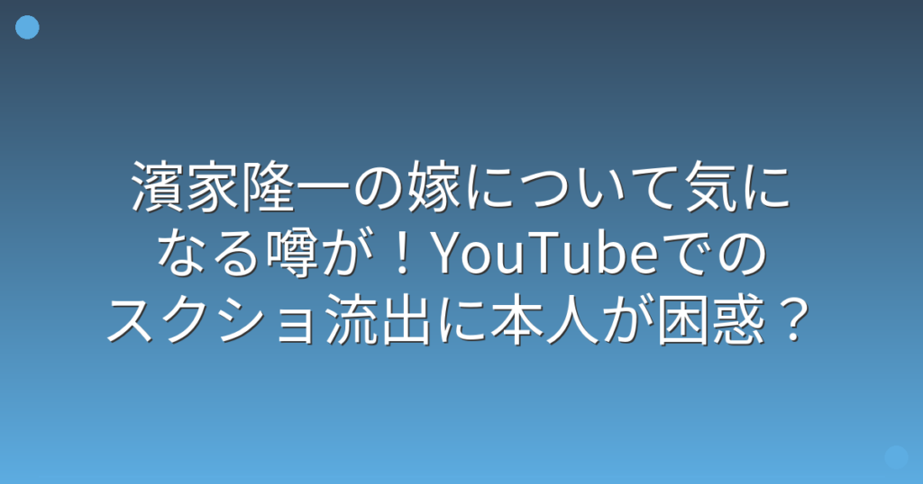 濱家隆一の嫁について気になる噂が!YouTubeでのスクショ流出に本人が困惑?
