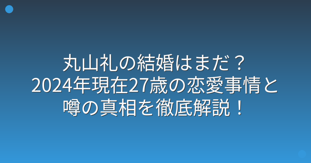 丸山礼の結婚はまだ?2024年現在27歳の恋愛事情と噂の真相を徹底解説!