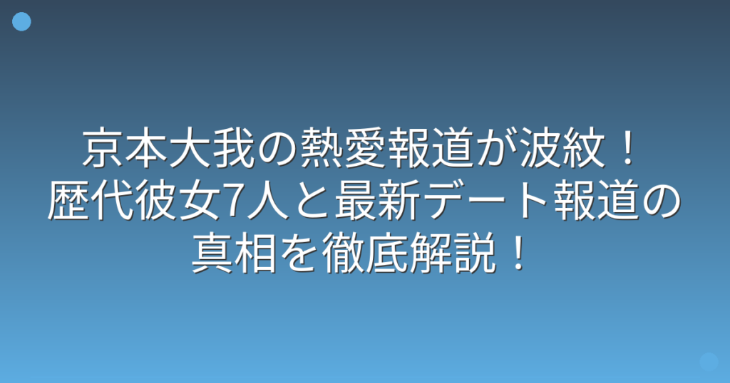 京本大我の熱愛報道が波紋!歴代彼女7人と最新デート報道の真相を徹底解説!