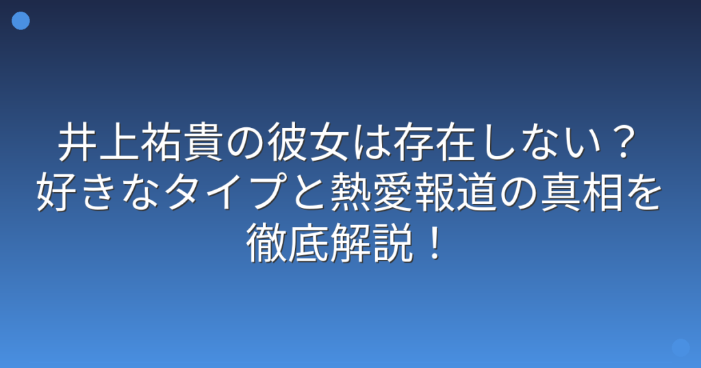 井上祐貴の彼女は存在しない?好きなタイプと熱愛報道の真相を徹底解説!