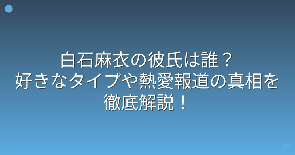 白石麻衣の彼氏は誰?好きなタイプや熱愛報道の真相を徹底解説!