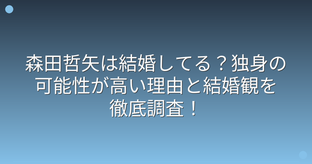 森田哲矢は結婚してる?独身の可能性が高い理由と結婚観を徹底調査!