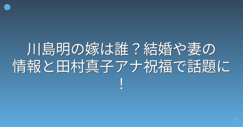 川島明の嫁は誰?結婚や妻の情報と田村真子アナ祝福で話題に!