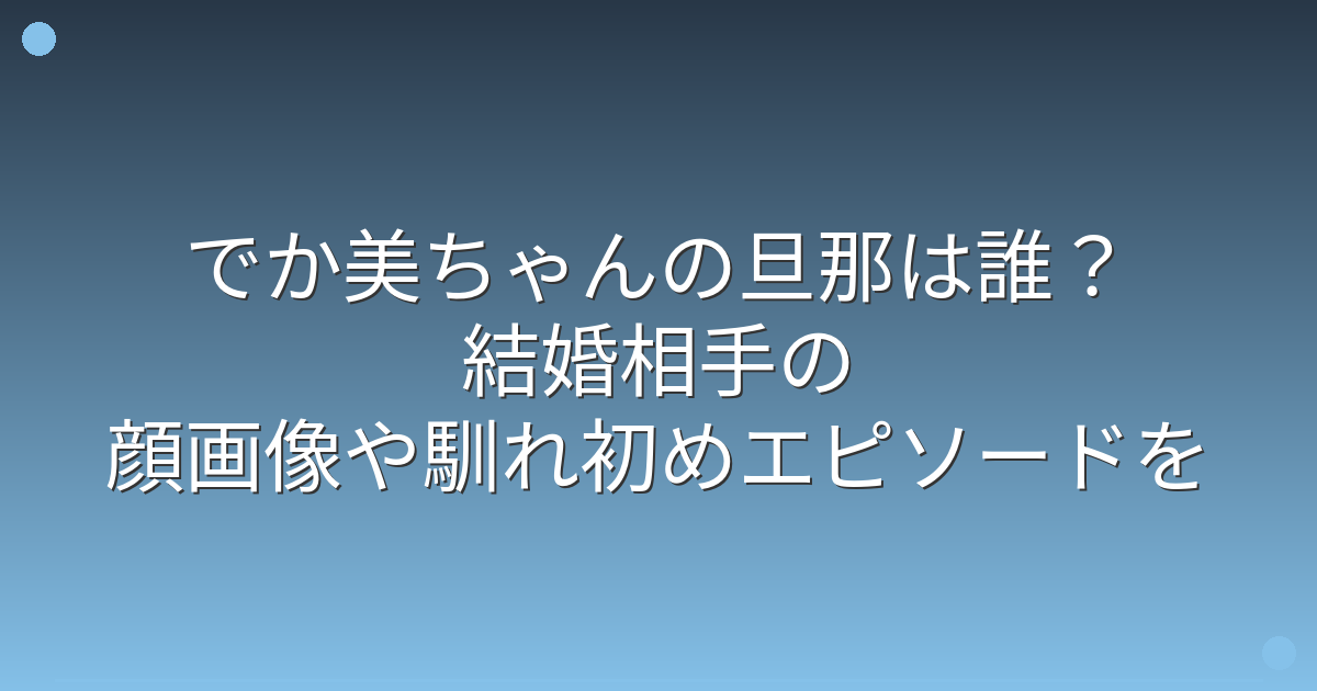 そこで今回は、でか美ちゃんの旦那さんは誰なのか、結婚相手の詳細や馴れ初めエピソードについて詳しく見ていきましょう!