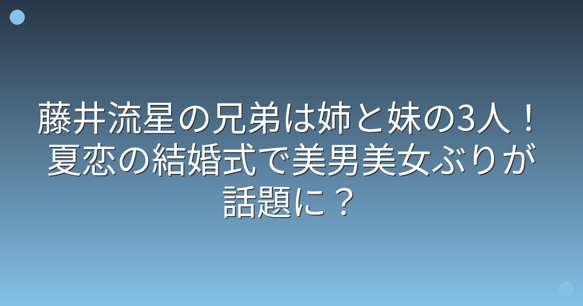 そこで今回は、藤井流星さんの兄弟構成や家族のエピソード、結婚式で注目された美貌について詳しく見ていきましょう!