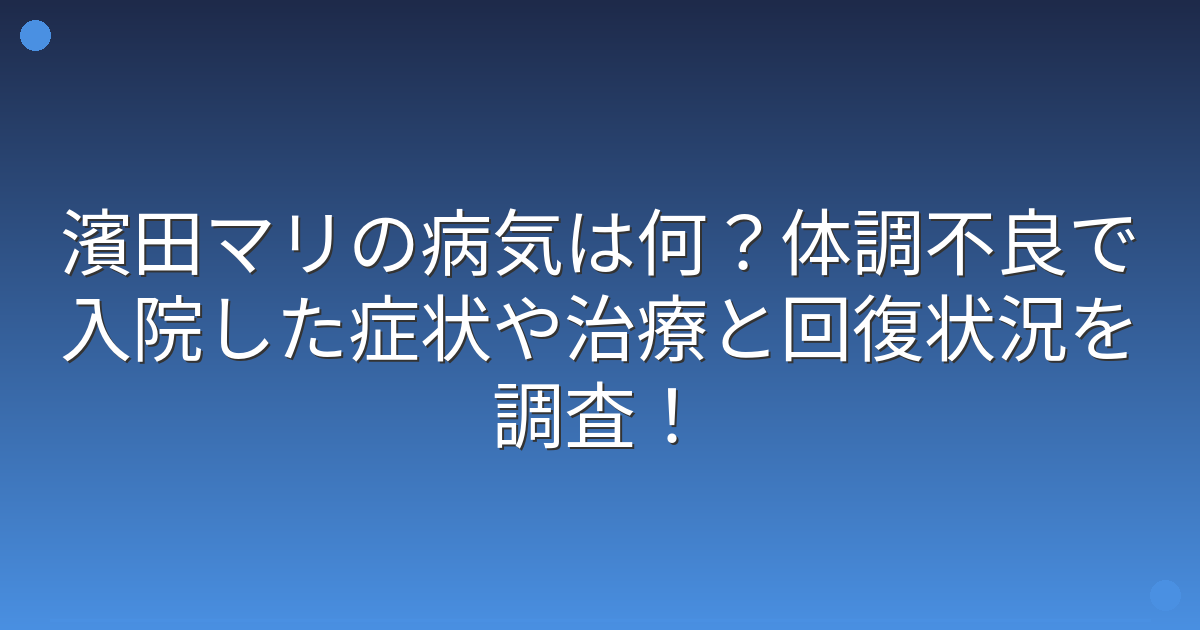 濱田マリの入院と症状について