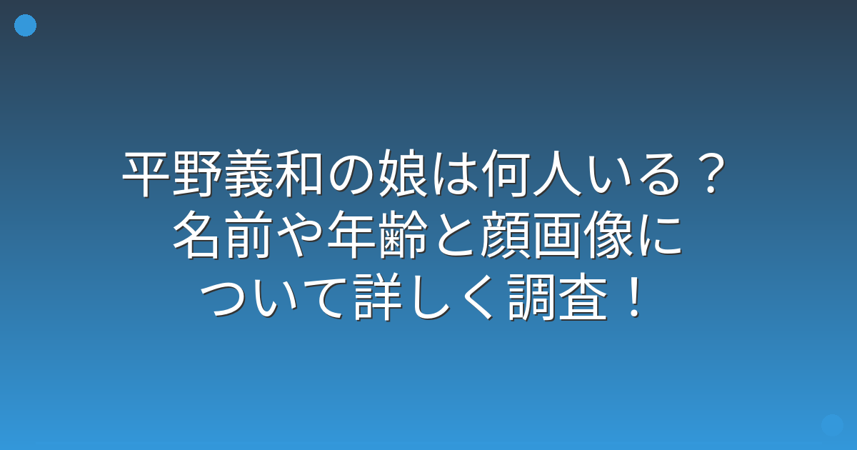 そこで今回は、平野義和さんの娘について、人数や名前、年齢などの基本情報を詳しく見ていきましょう!