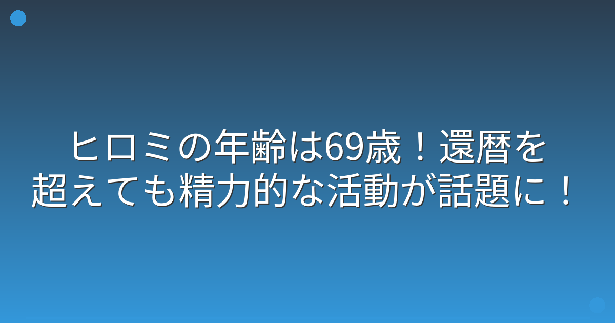 そこで今回は、ヒロミさんの年齢や現在の活動内容について詳しく見ていきましょう!