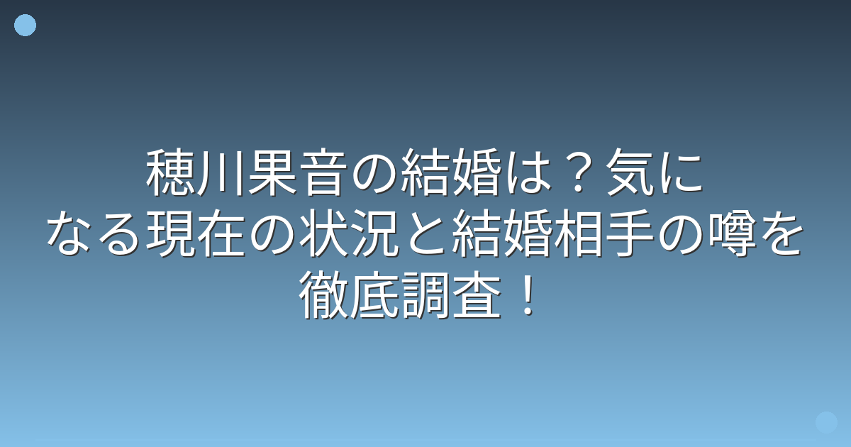 そこで今回は、穂川果音さんの結婚に関する現在の状況や、結婚相手の噂、そしてプライベートについて詳しく見ていきましょう!