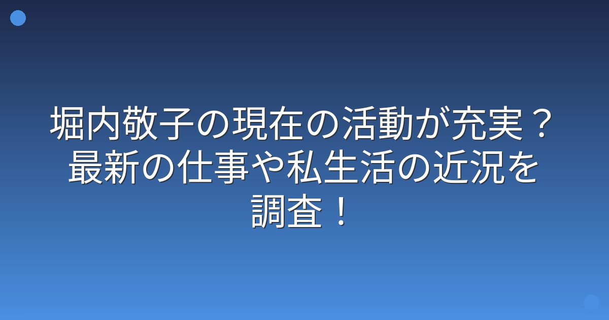 今回は、堀内敬子さんの現在の活動状況や最新の仕事、私生活の近況についてお伝えしてきました。
