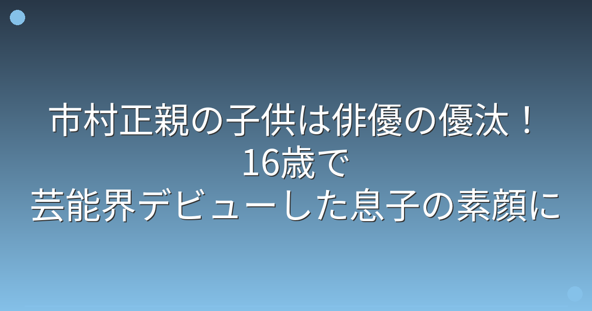 最近、俳優の市村正親さんの息子である市村優汰さんが、SNSの更新を再開し、話題となっていますね。
