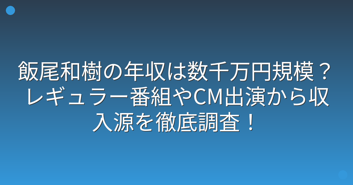 複数の報道によると、飯尾さんの年収は本人による公式発表はないものの、複数のレギュラー番組やCM出演を考慮すると数千万円規模と推測されるとのことです。