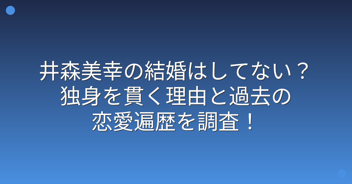また、井森さんはプライベートをあまり公にしないタイプとして知られており、これも独身を貫く一つの理由かもしれません。