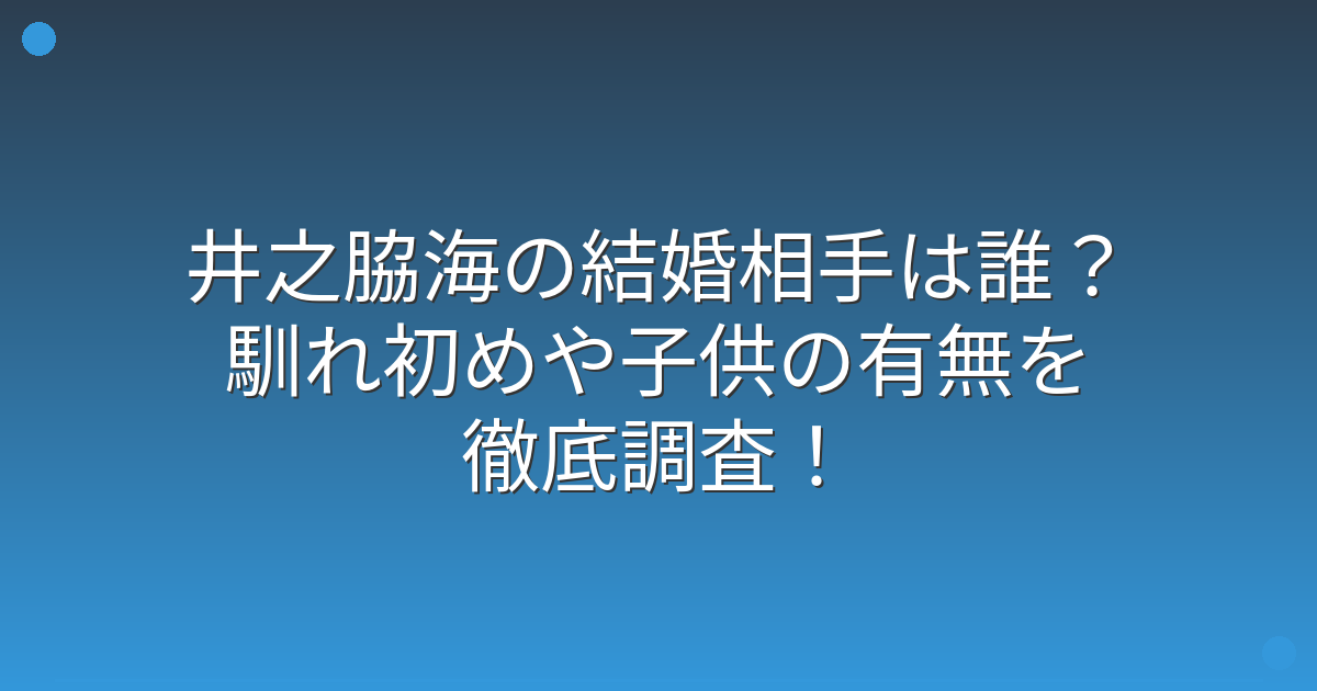 実力派俳優として数々の作品に出演し、その演技力で多くの視聴者を魅了している井之脇海さんですが、プライベートな結婚情報についても注目が集まっています。