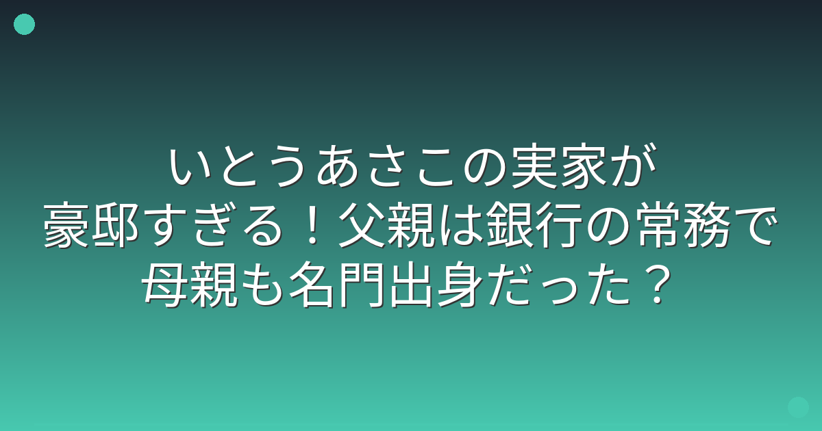 複数の報道によると、いとうあさこさんの父親は銀行の重役として、多くの重要な業務に携わっていたそうです。