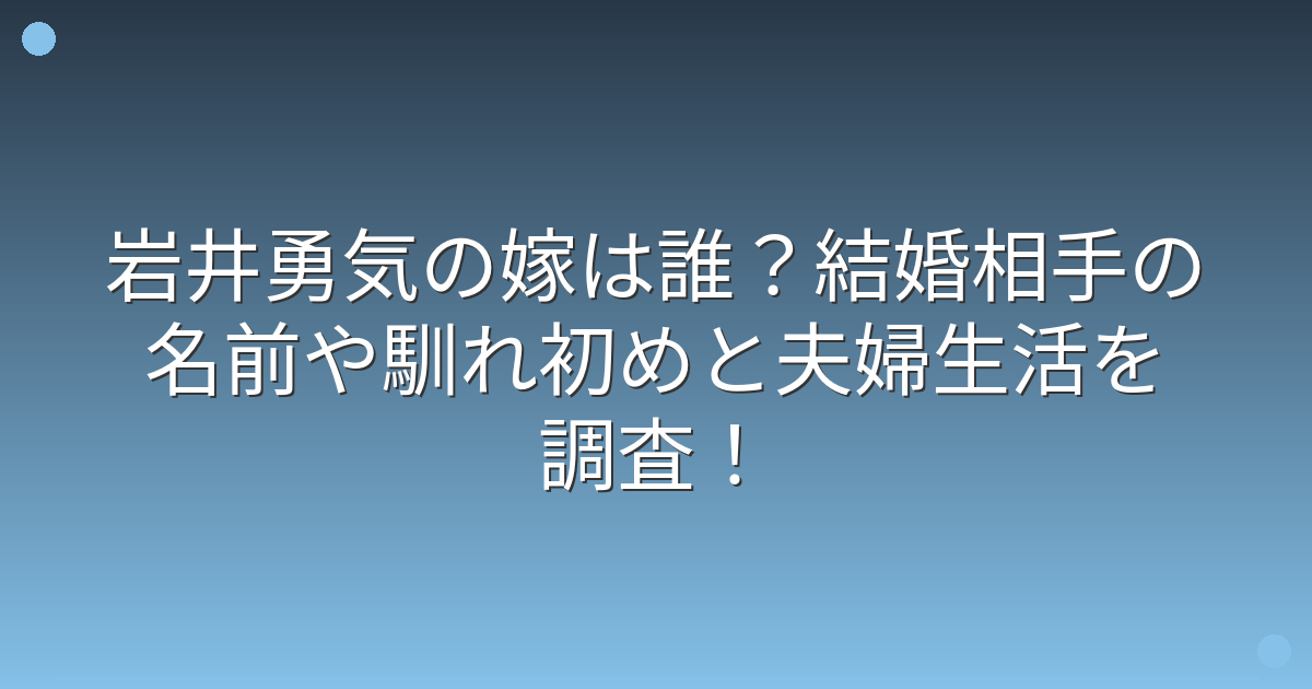 そこで今回は、岩井勇気さんの嫁は誰なのか、結婚相手の情報や馴れ初めについて詳しく見ていきましょう!