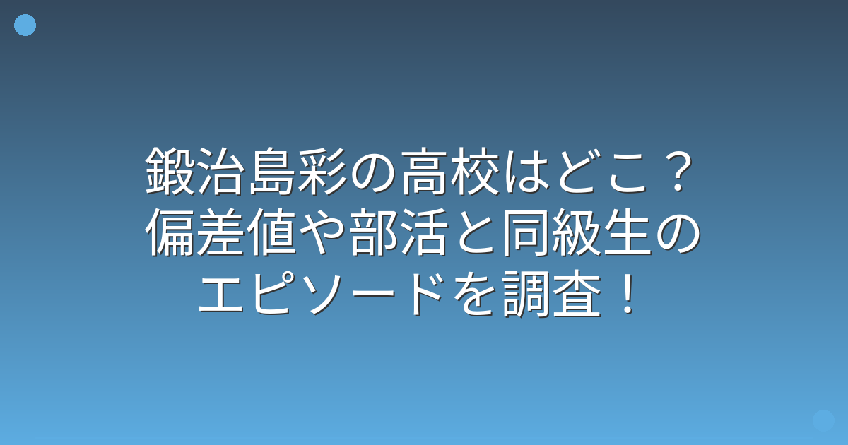 そこで今回は、鍛治島彩さんの出身高校や偏差値、部活動や同級生とのエピソードについて詳しく見ていきましょう!