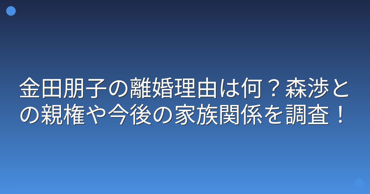 今回は、金田朋子さんと森渉さんの離婚理由や親権、今後の家族関係についてお伝えしてきました。
