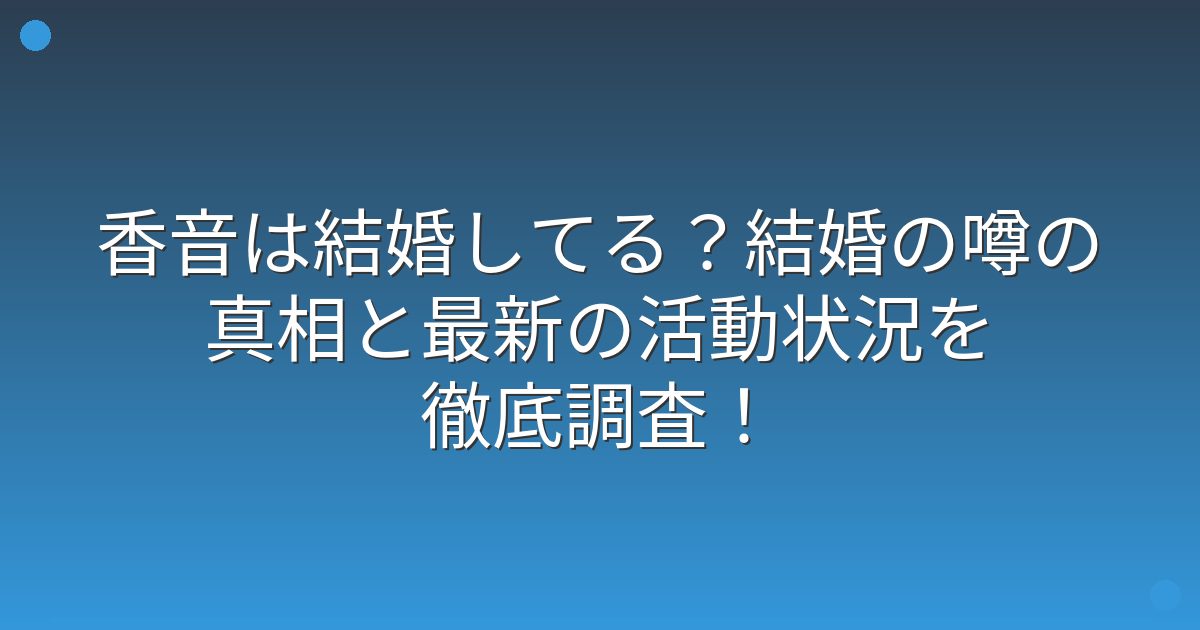 そこで今回は、香音さんの結婚に関する情報や最新の活動状況について詳しく見ていきましょう!