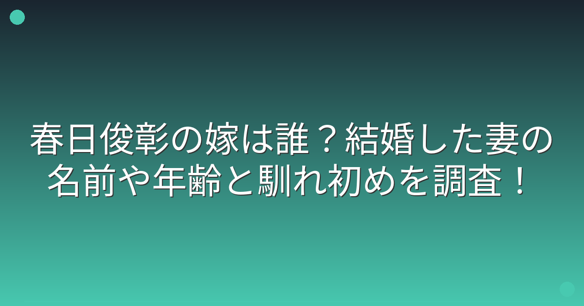 春日俊彰の嫁は誰?結婚しているのか