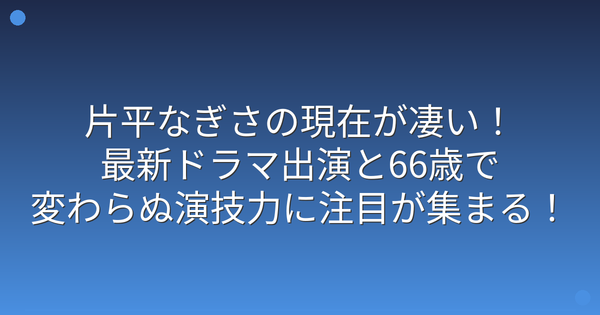 今回は、片平なぎささんの現在の活動状況や、最新の出演作、そして注目の的となっている近況についてお伝えしてきました。