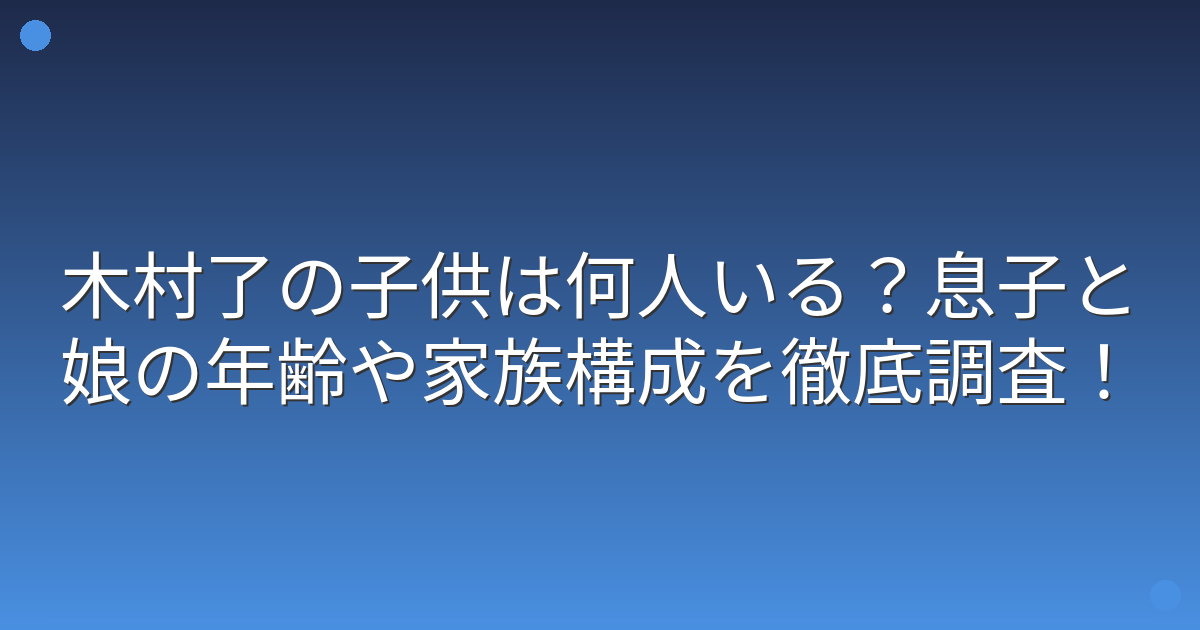 そこで今回は、木村了さんの子供の人数や年齢、家族構成について詳しく見ていきましょう!