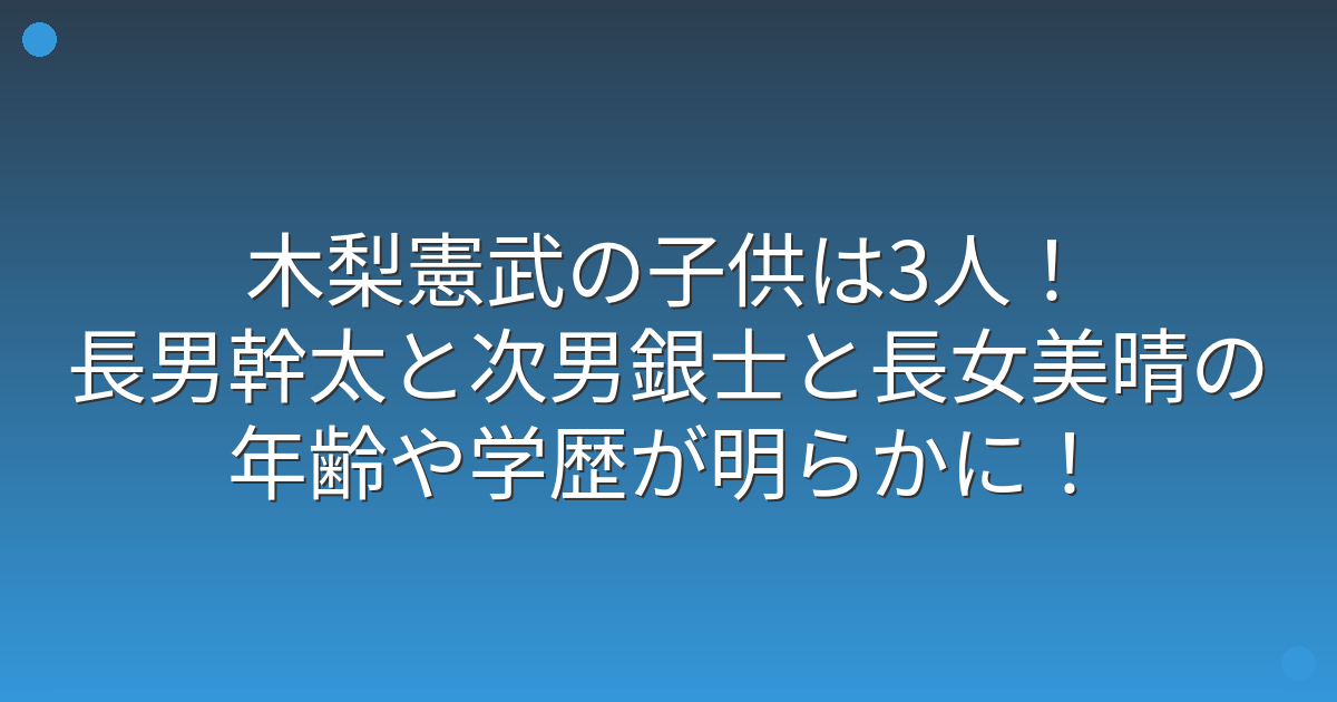 子供たちは長男・幹太さん(1995年12月生まれ)、次男・銀士さん(1999年2月生まれ)、長女・美晴さん(2003年5月生まれ)の3人です。