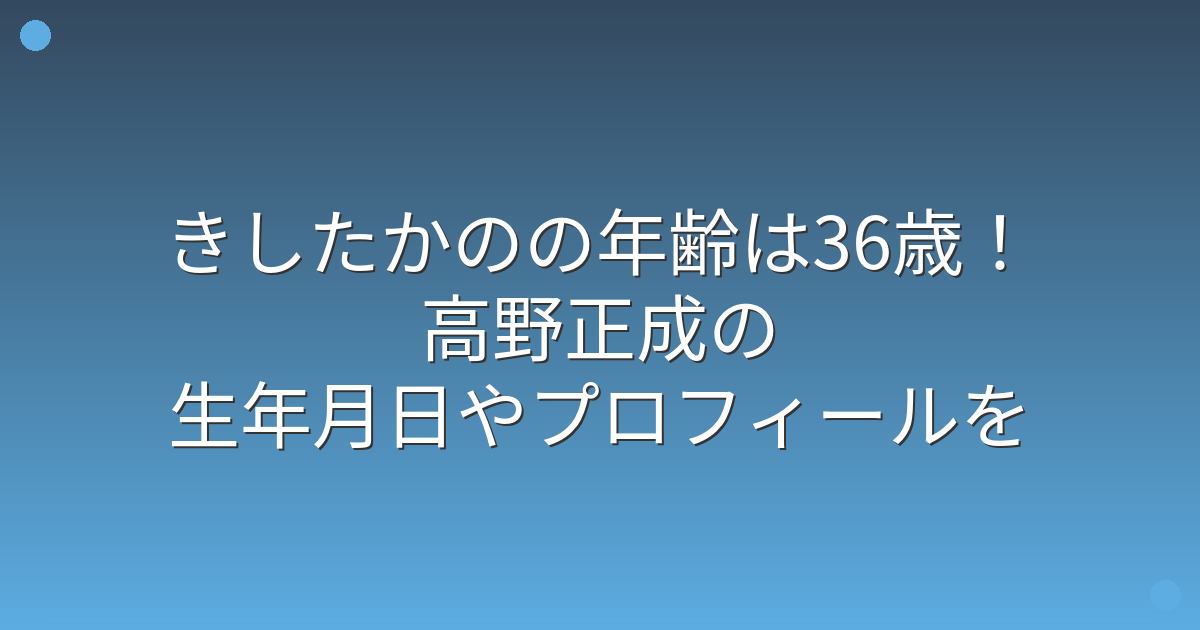 そこで今回は、きしたかの高野正成さんの年齢や生年月日、そして注目されるまでの経歴について詳しく見ていきましょう!