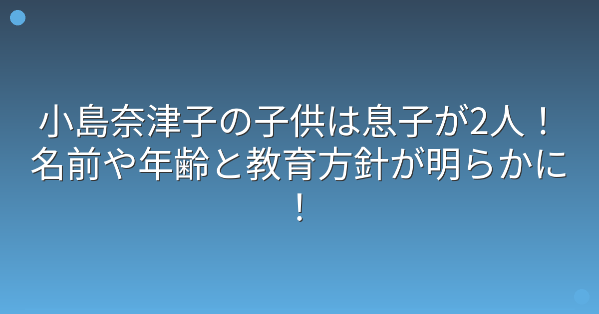 小島奈津子さんの息子さんたちの具体的な名前については、公式には明かされていません。