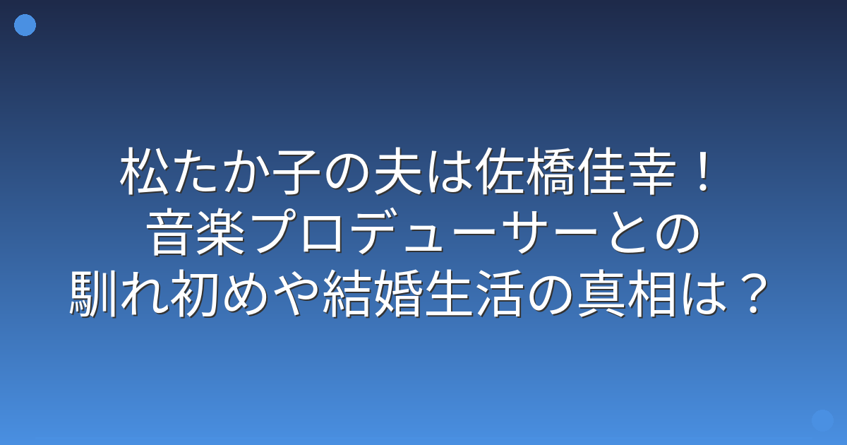 今回は、松たか子さんの夫である佐橋佳幸さんや、お二人の馴れ初めと結婚生活についてお伝えしてきました。