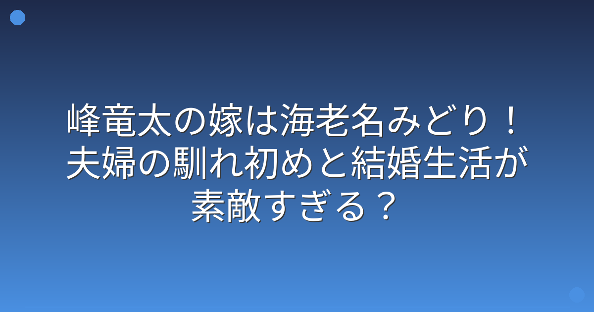 峰竜太と海老名みどりの馴れ初め