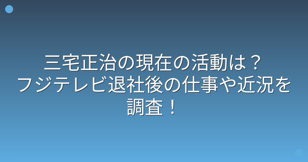 2023年にフジテレビを退社した三宅正治さんですが、その後どのような活動をしているのか気になっている方も多いのではないでしょうか。