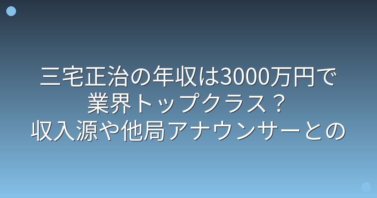 三宅正治さんの推定年収は約3000万円で、アナウンサー業界の平均年収の約2倍から3倍という高水準です。