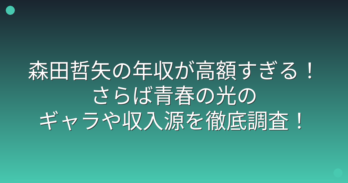 森田哲矢さんの年収は、推定で約2000万円から3000万円程度と言われています。