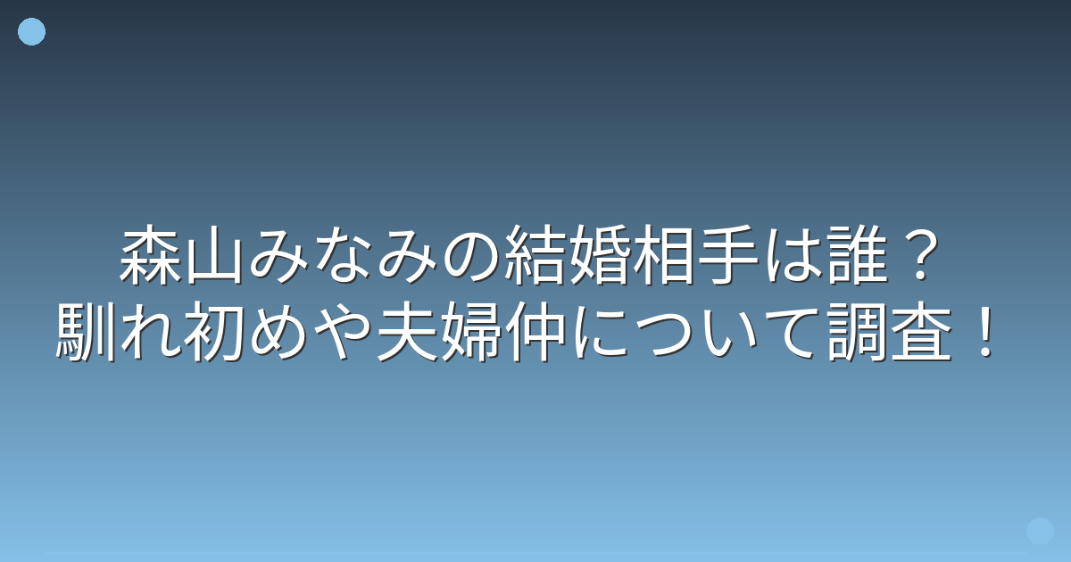 森山みなみさんは結婚しているのか、結婚相手はどんな方なのか気になっている方も多いのではないでしょうか。