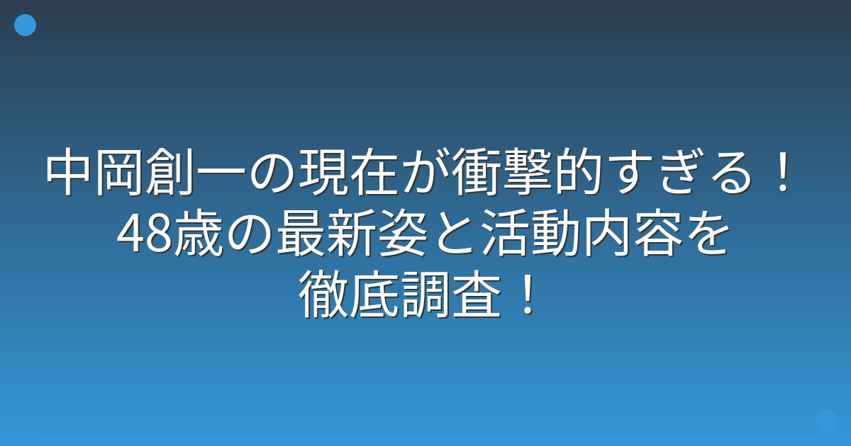 そこで今回は、中岡創一さんの現在の姿や最新の活動内容、そして私生活について詳しく見ていきましょう!