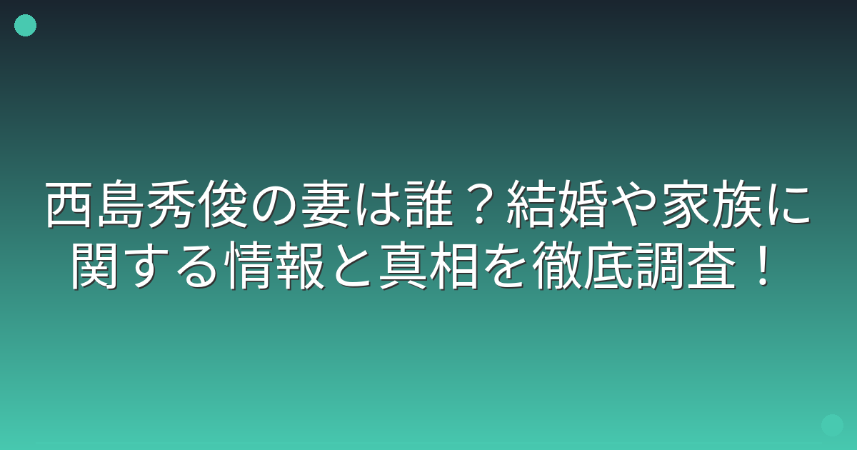 特にファンの間で話題になるのが「西島秀俊さんの妻や結婚に関する情報」。