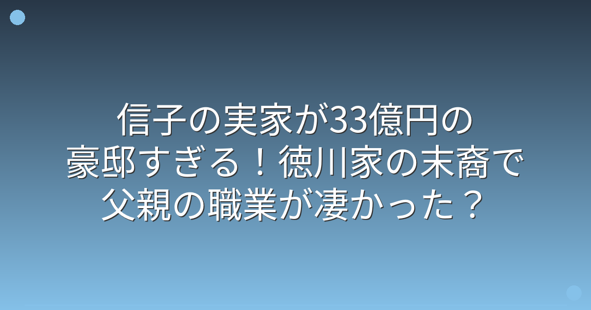 そこで今回は、信子さんの実家の豪邸や父親の職業、徳川家の末裔という家系について詳しく見ていきましょう!