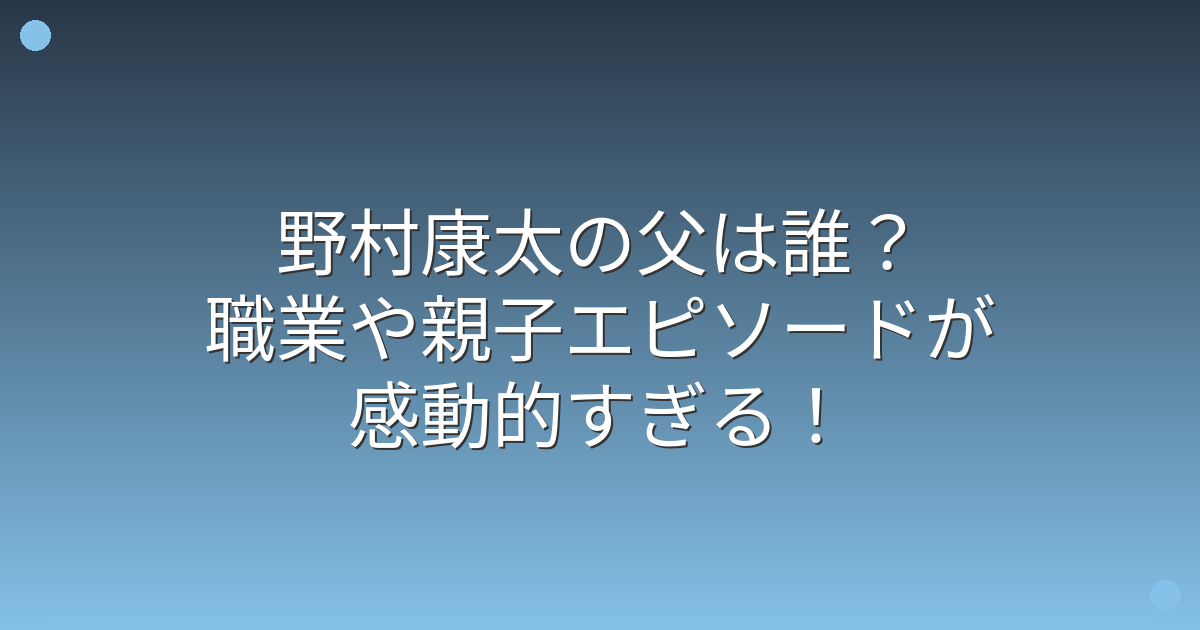 そこで今回は、野村康太さんの父親について、職業や親子関係、感動的なエピソードなど詳しく見ていきましょう!