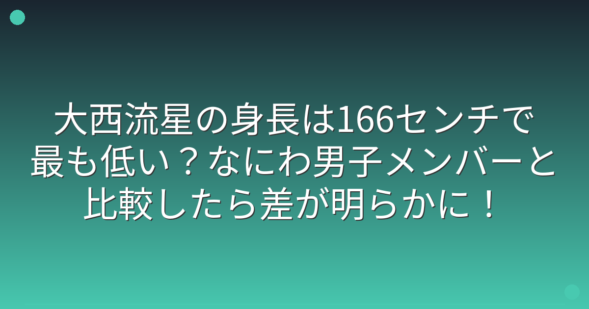 今回は、大西流星さんの身長やなにわ男子メンバーとの比較、身長に関する評価や最新活動についてお伝えしてきました。