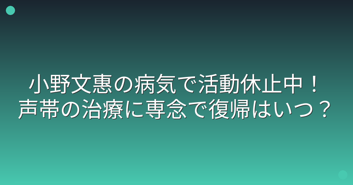 小野文惠さんの治療は、声帯の専門医のもとで慎重に進められていることがわかっています。