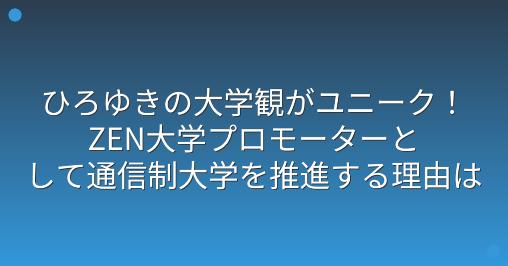 ひろゆきの大学観がユニーク!ZEN大学プロモーターとして通信制大学を推進する理由は?